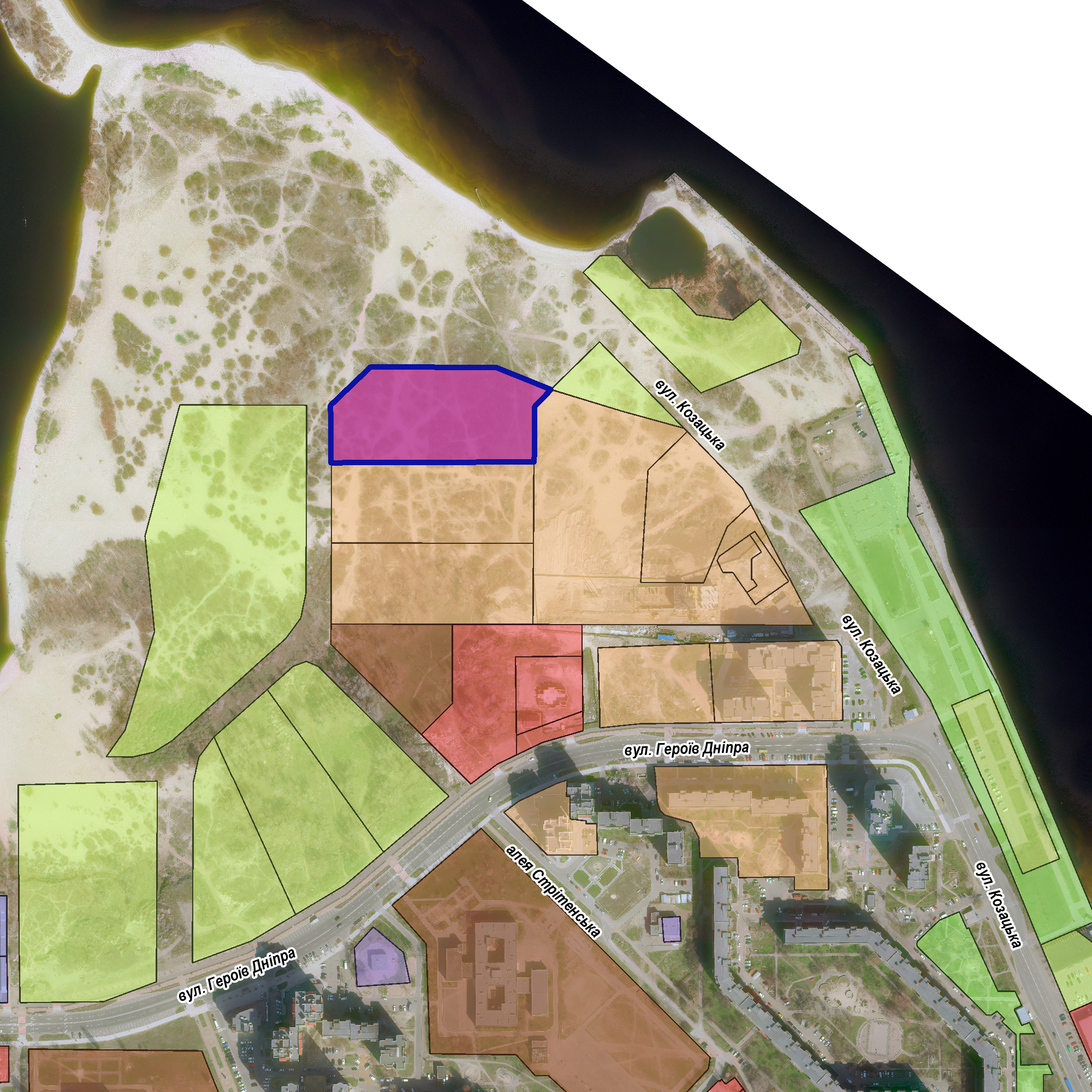 Адреса земельної ділянки: м. Черкаси, в районі вул. Героїв Дніпра та вул. Козацької