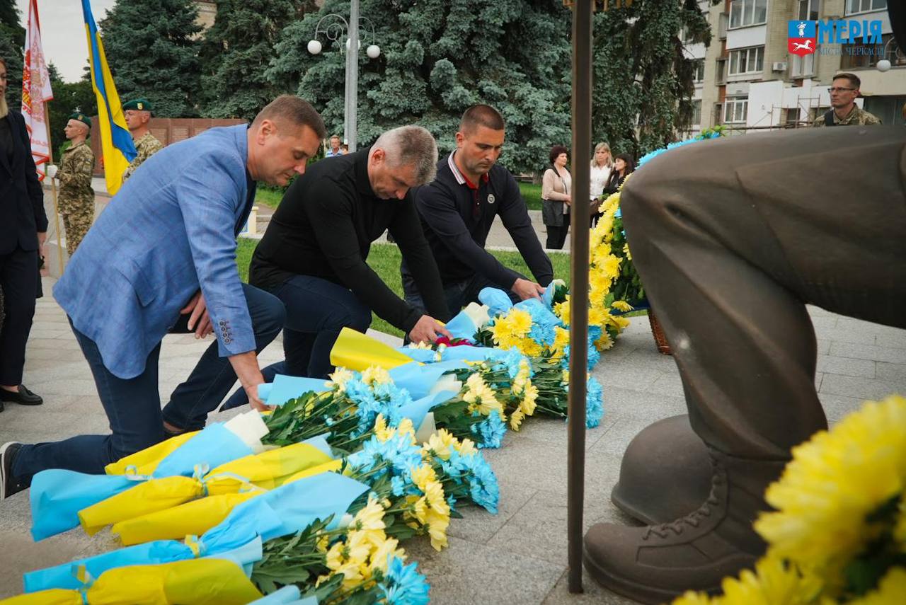 Сьогодні в Черкасах відбулася церемонія вшанування пам’яті загиблих захисників України. Родинам черкасців, які віддали своє життя за незалежність нашої держави, вручили почесні відзнаки «Захисник України – Герой Черкас».
