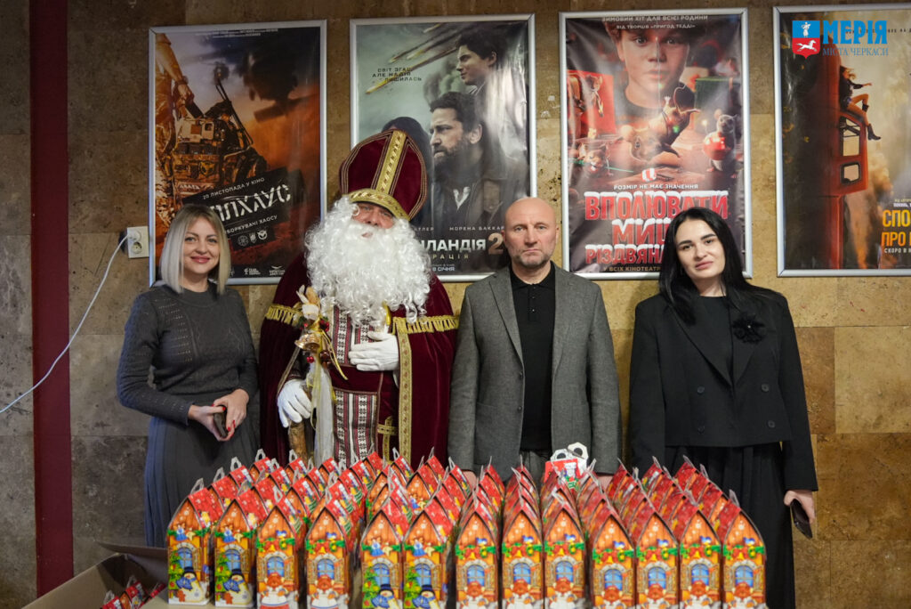 У кінотеатрі «Україна» для них підготували справжню різдвяну атмосферу: перегляд мультфільму, зустріч зі Святим Миколаєм, солодкі подарунки, фотозони.