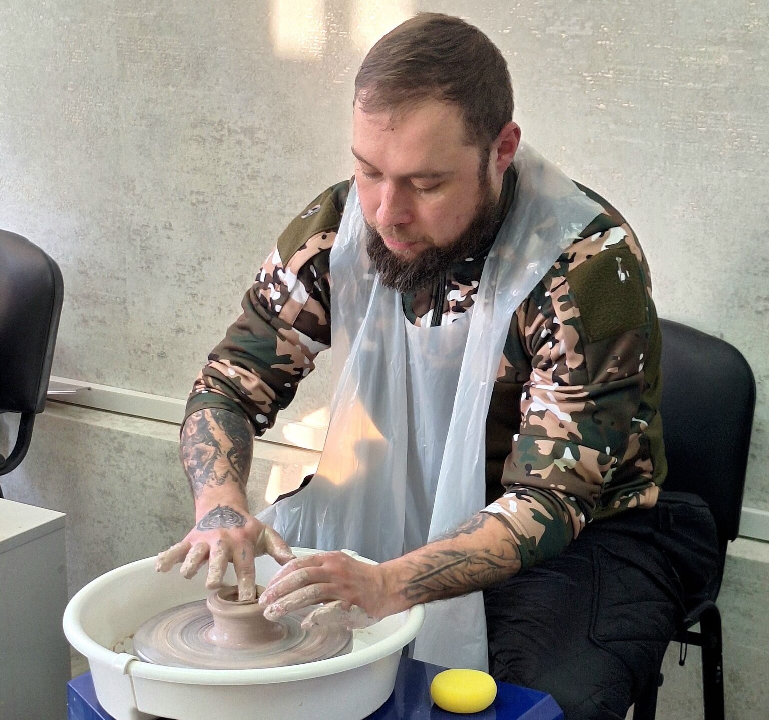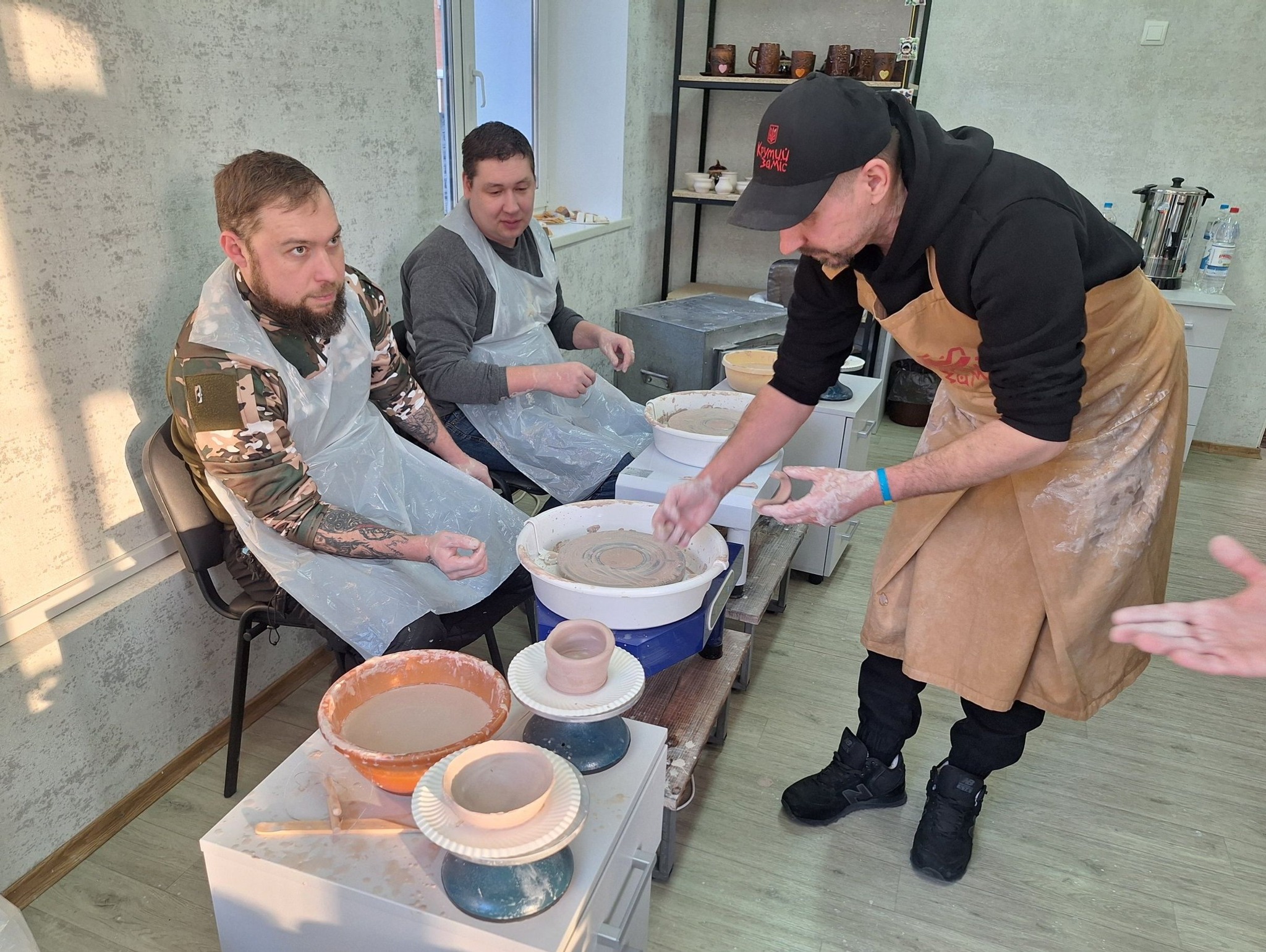 «Я вперше пробую ліпити з глини і вперше тут у майстерні. Відчув себе спокійним, як у дитинстві. Задоволений. Буду рекомендувати гончарну майстерню друзям, і прийду сюди з родиною», – поділився враженнями ветеран Валерій Зубалій.
