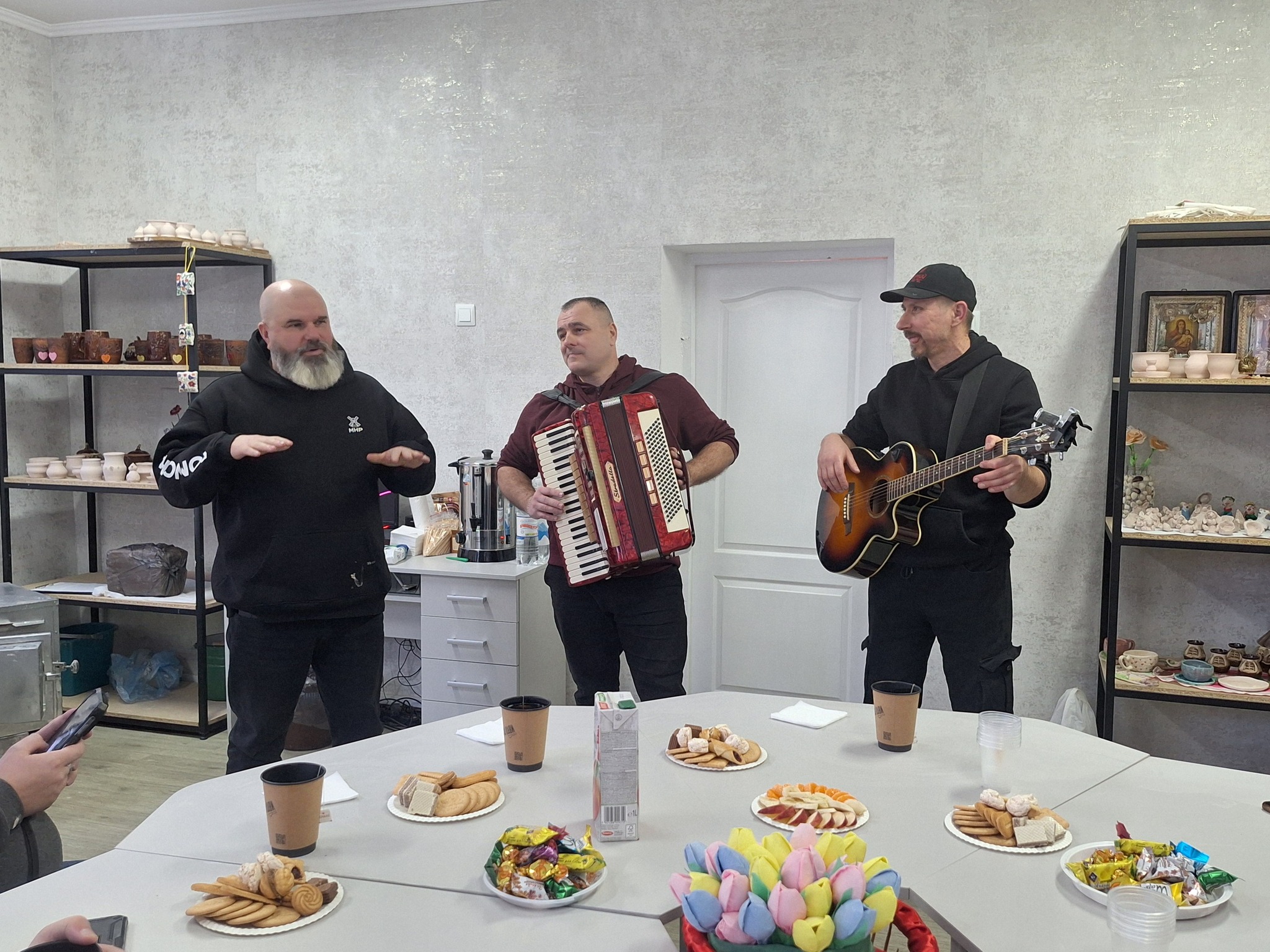Музиканти гурту «Крутий заміс» вчили учасників майстер-класу майстерності ліплення з глини та роботи на гончарному колі. Наприкінці гурт виконав патріотичні пісні. Результат перевершив сподівання. Більшість учасників ділячись враженнями згадували своє дитинство, мирне життя.