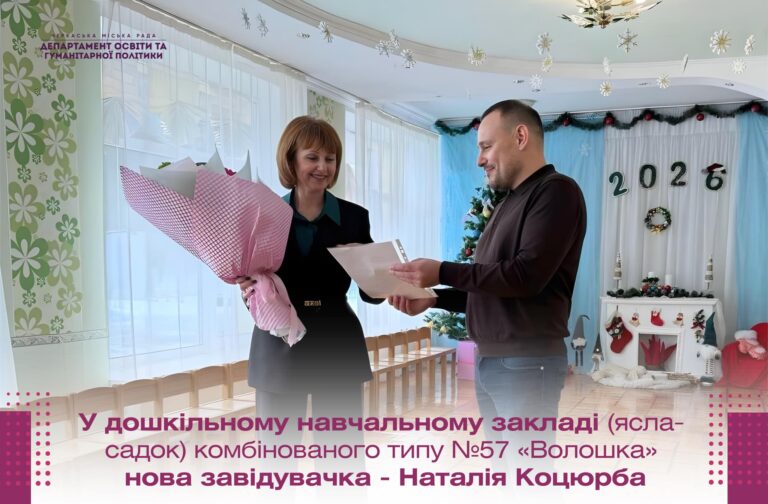 Директор департаменту освіти та гуманітарної політики Богдан Бєлов представив колективу нову завідувачку дошкільного навчального закладу (ясла-садок) комбінованого типу №57 «Волошка» – Наталію Коцюрбу. Наталія Станіславівна має профільну педагогічну освіту та багаторічний досвід роботи у сф...