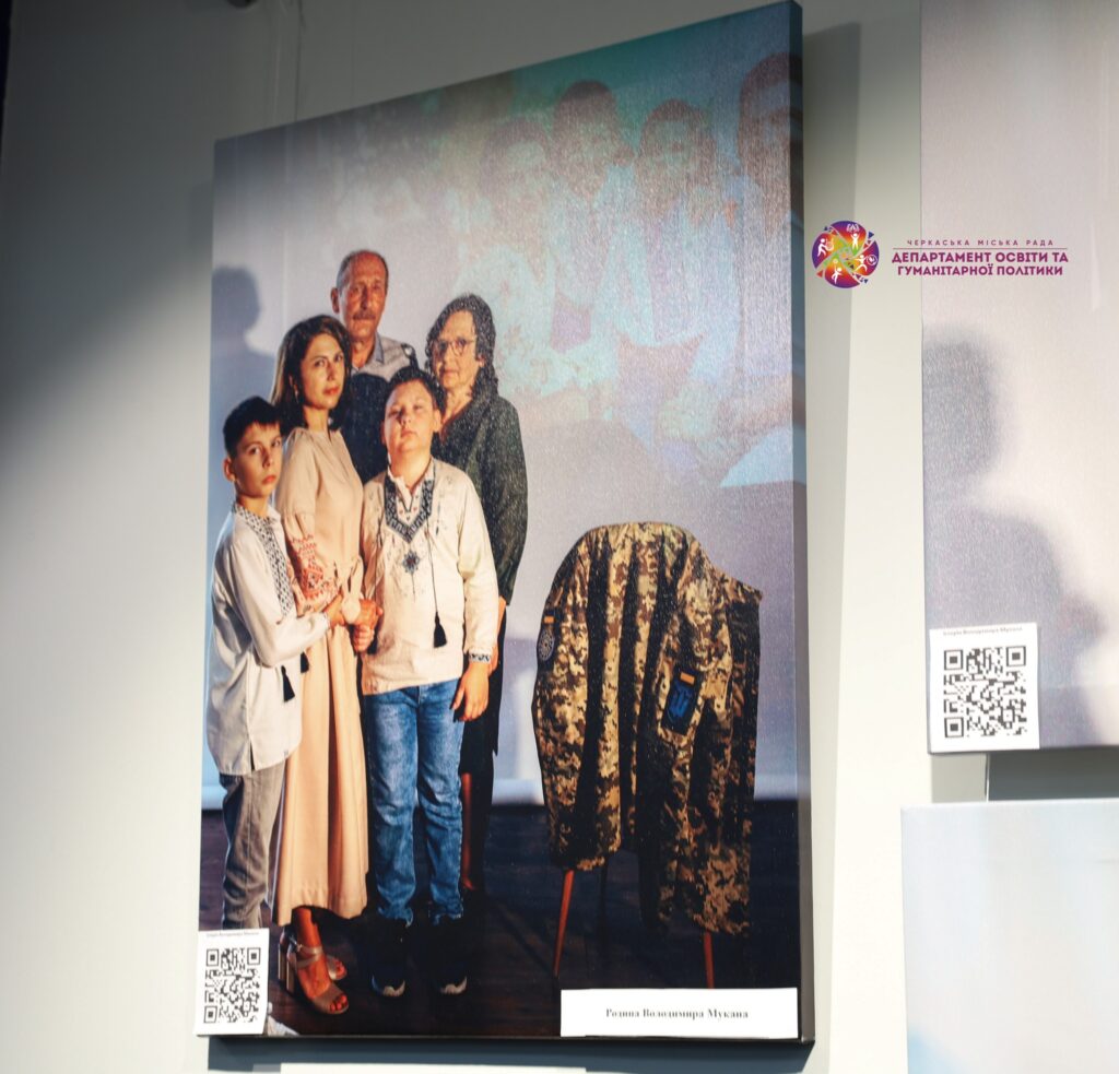 На фотокартинах представлені портрети родин полеглих воїнів із Черкащини, які поділилися з журналістами видання історіями своїх Героїв. Біля кожного фото прикріплені QR-коди, які потрібно просканувати й з’явиться можливість прочитати та переглянути історію кожного Героя.
